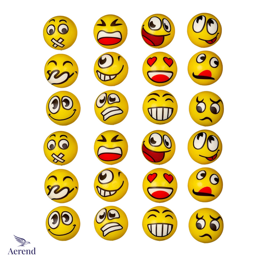 Aerend - 24 stuks Grappige emoji stressballen - Vermindert stress en angst - Klein fidget oefenspeelgoed - Ideaal speelgoed voor kinderen en volwassenen