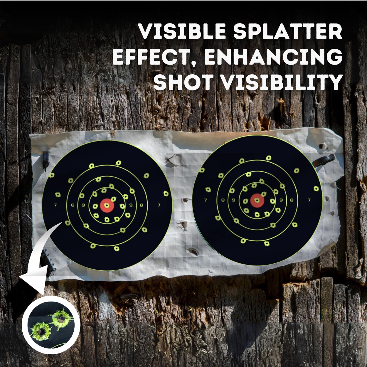 💥 SPLATTER-EFFEKT: Nach jedem Schuss weisen diese Ziele einen sichtbaren Splatter-Effekt auf, sodass Sie Ihre Treffer auch aus der Ferne gut erkennen können. Diese Funktion verleiht Ihrem Schießtraining Spannung und Herausforderung.