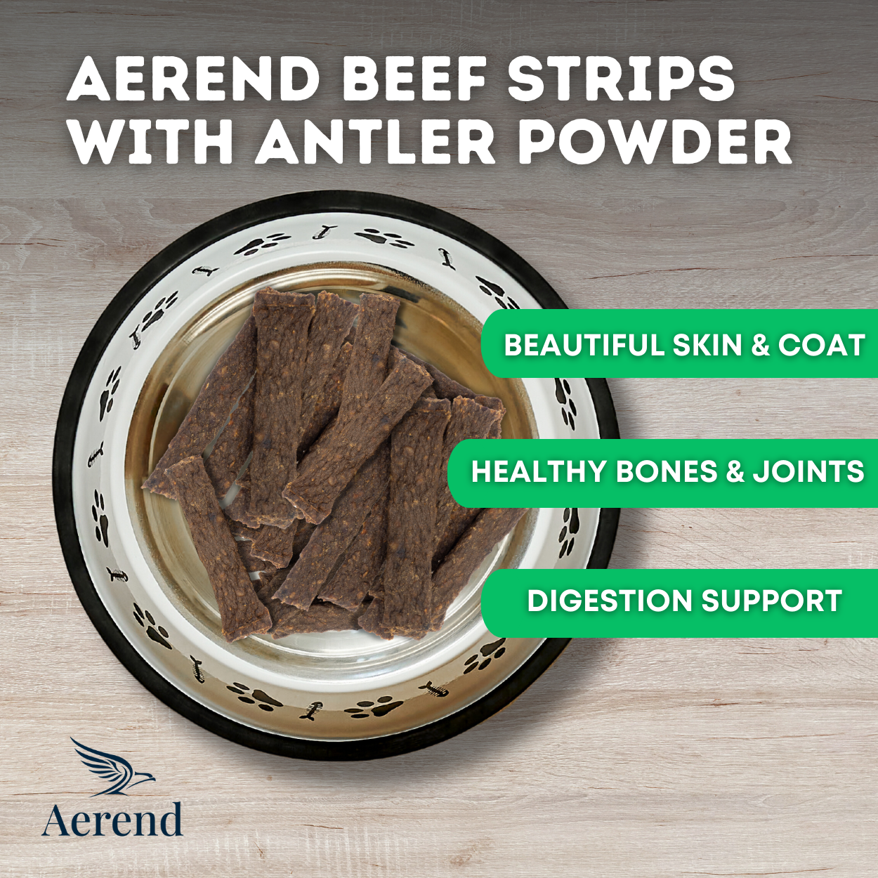 Aerend Rind Streifen für Hunde mit Geweihpulver