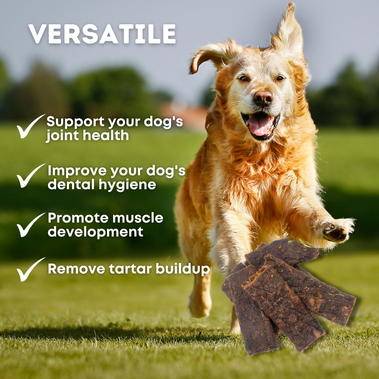 💪 Muskelaufbau fördern: Mit hochwertigem Fleisch und Geweihpulver gefüllt, tragen diese Streifen auch zur gesunden Muskelentwicklung bei und gewährleisten, dass Ihr Hund aktiv und kräftig bleibt.
