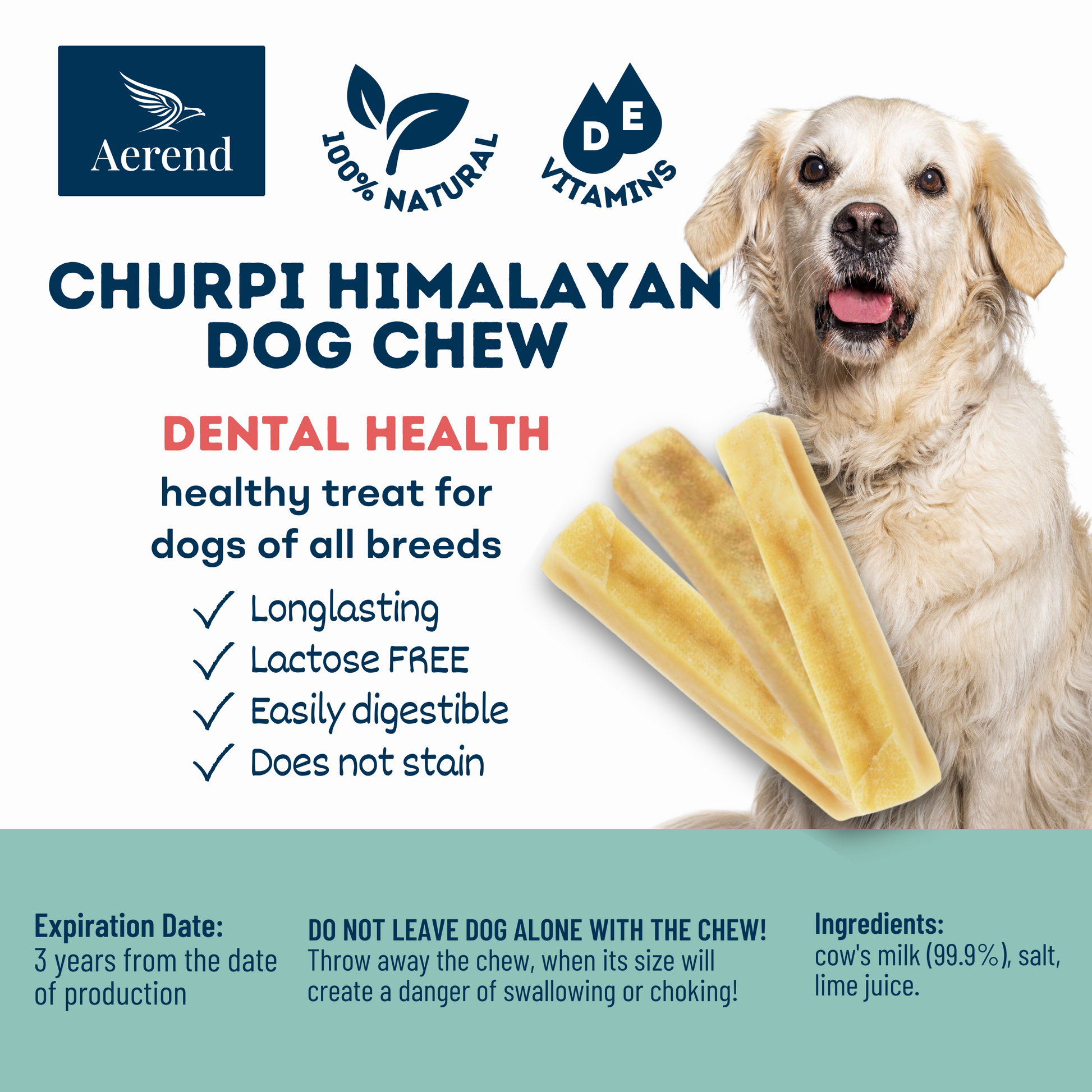 Himalaya-Käse, bekannt als Churpi, bietet einen natürlichen und gesunden Kausnack für Hunde aller Rassen, Größen und Altersgruppen. Es fördert die Zahnhygiene durch die Entfernung von Zahnstein und ist reich an Proteinen, Vitaminen und Mineralstoffen. Durch einen sorgfältigen Produktionsprozess hergestellt, ist es langlebig und sorgt für langanhaltende Freude. Aerend Churpi wird aus natürlichen Zutaten nach traditionellen Methoden hergestellt und stammt aus der Himalaya-Region. Es handelt sich um einen 100 % natürlichen Kausnack für Hunde, der wenig Fett enthält und die Zahngesundheit unterstützt, was ihn zu einem hervorragenden Leckerbissen für Hunde macht, das sowohl Vergnügen als auch gesundheitliche Vorteile vereint.